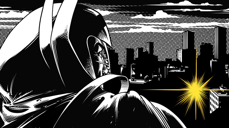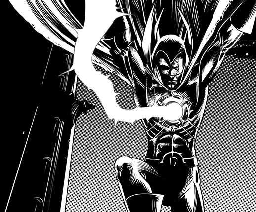 Derek Dark über den Dächern der verdunkelten Stadt
