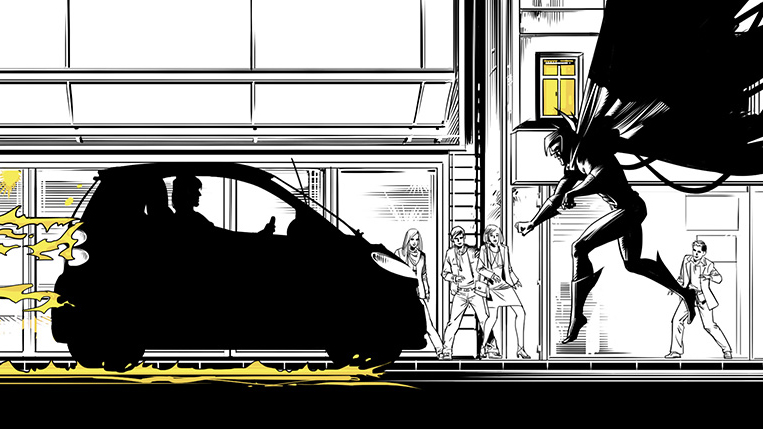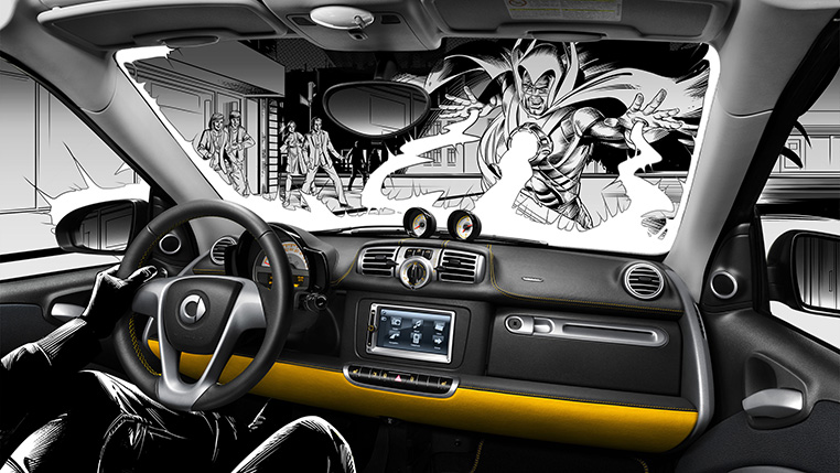 Der Smart fortwo in einer „Film noir / Superhero“ Story